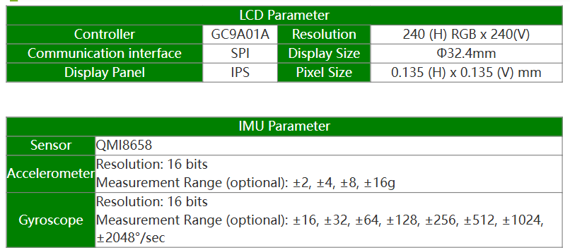 Onboard 1.28-inch 240 x 240 resolution, 65K RGB IPS LCD for clear color pictures.