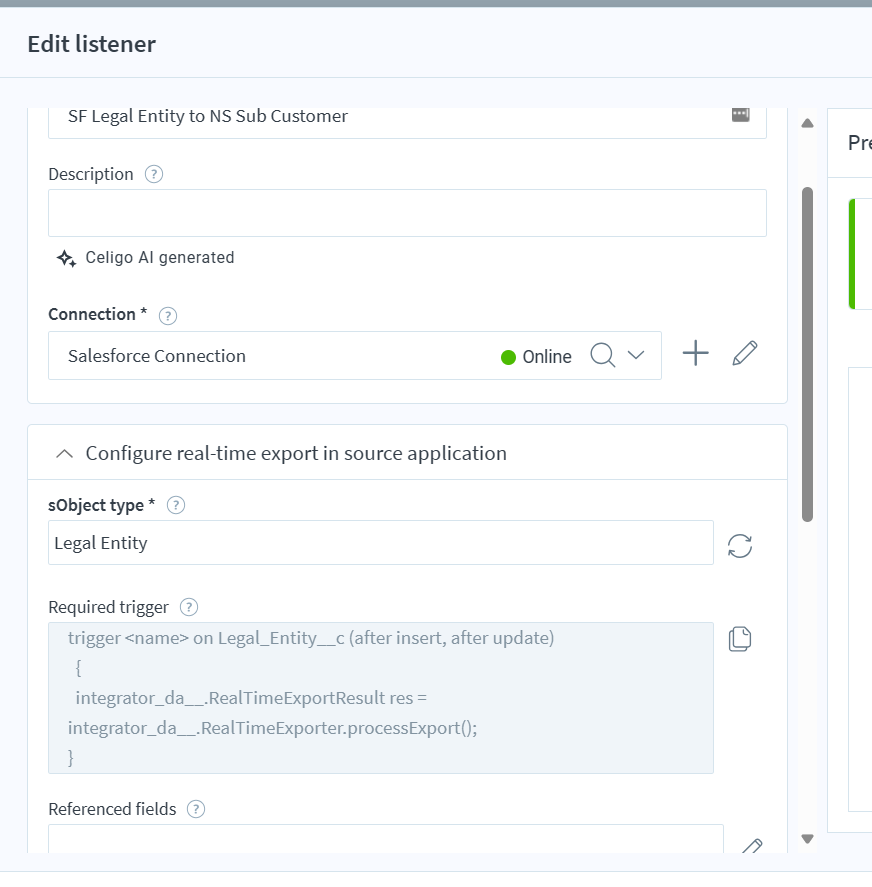 In the salesforce export flow, realtime trigger is created for legal entity object.