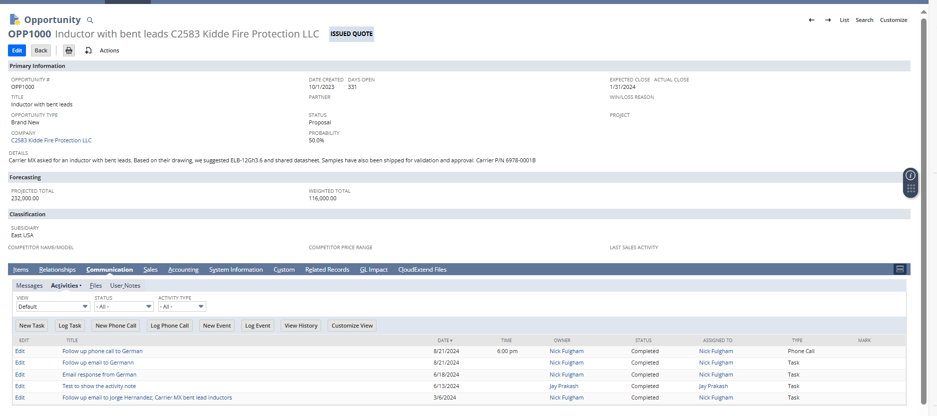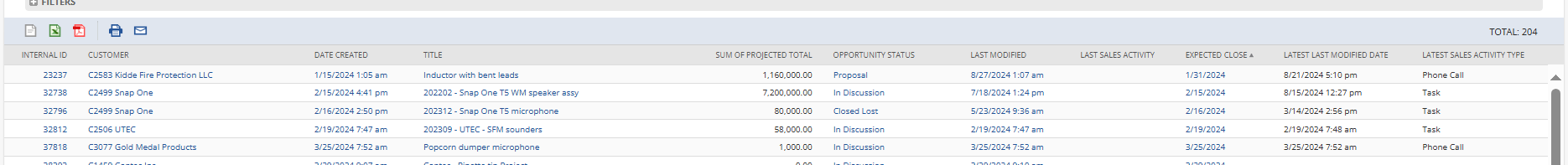 The search picks the latest activity modified and displays it based on oppportunity / transaction