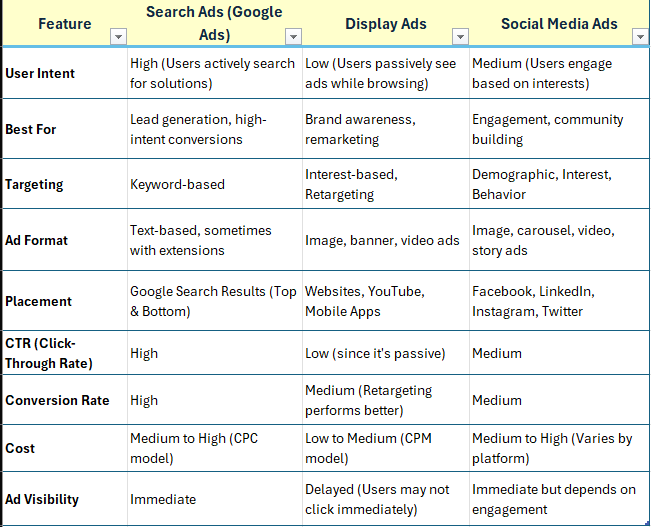 Comparison: Search Ads vs. Display Ads vs. Social Media Ads