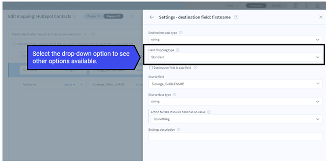 Selecting the Field Mapping Type in Celigo