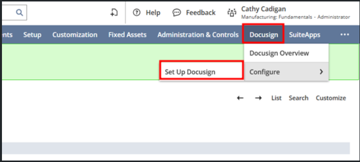 select Setup DocuSign to configure the DocuSign Account.