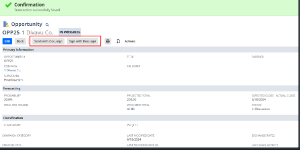 Install DocuSign for NetSuite (Bundle ID 351444).