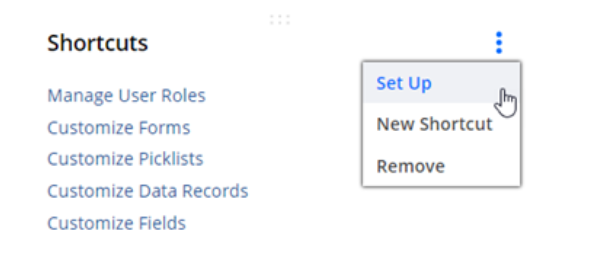 Most portlets have a menu that includes a Set Up link. When you click Set Up, a popup window opens where you can define data and layout. The menu is located on the right side of the title bar: