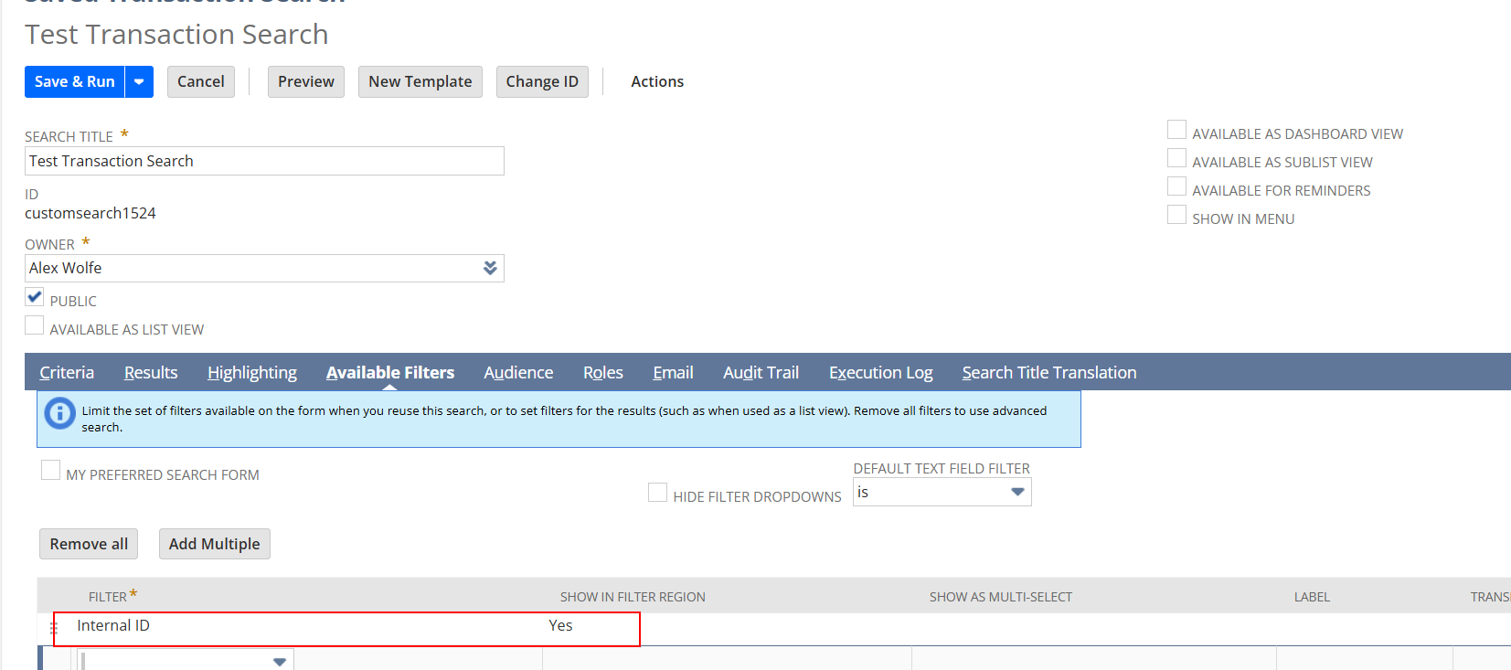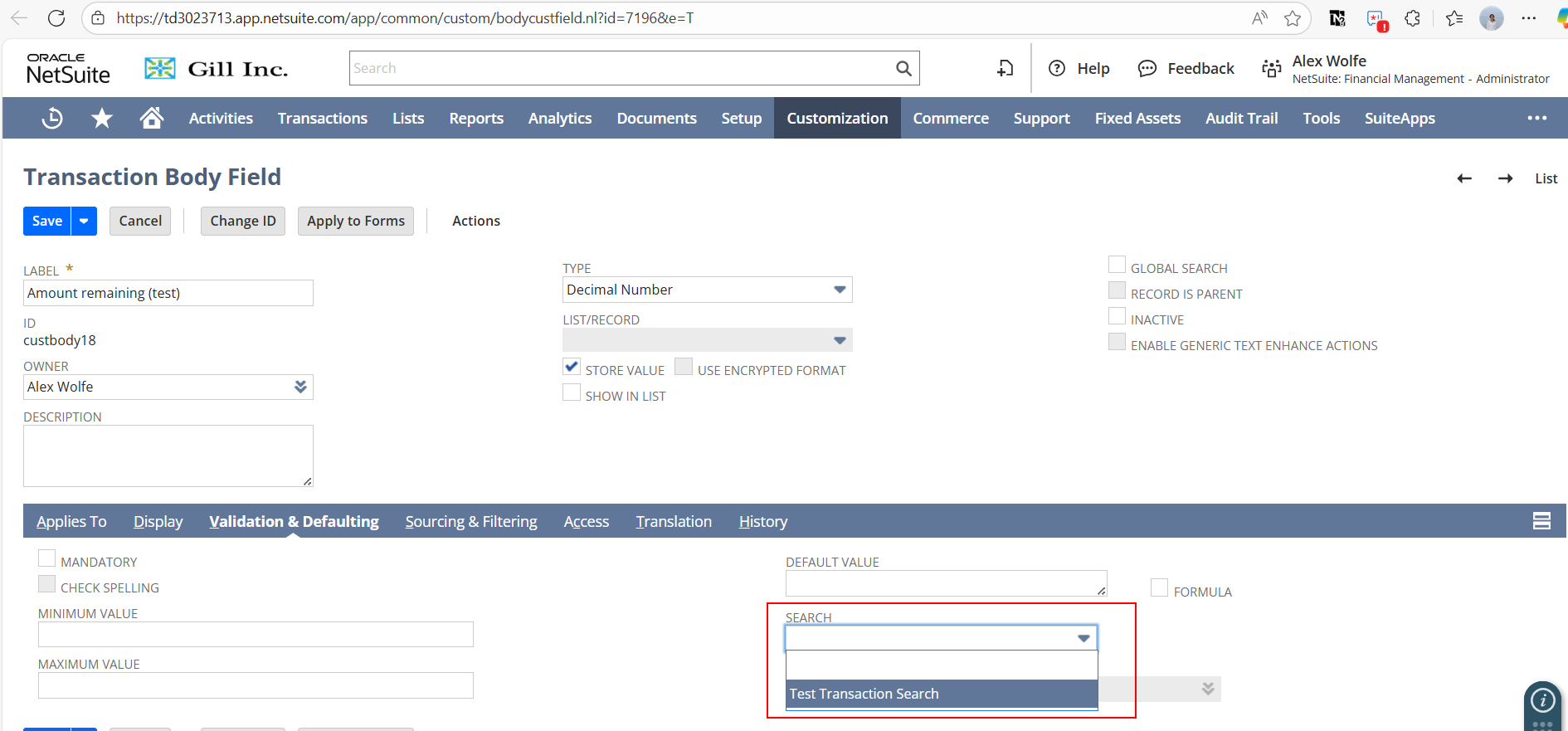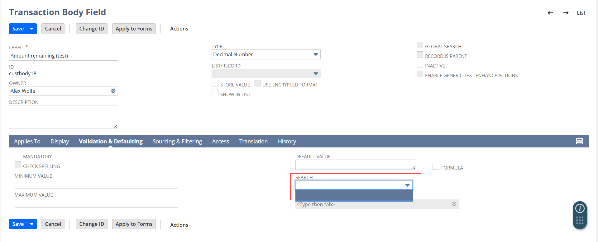 Scenario: While creating a custom field and trying to set the value of the field through search, the page is not displaying the created search. i.e. A saved earch has been created. But the search is not displaying in the custom field creation page.