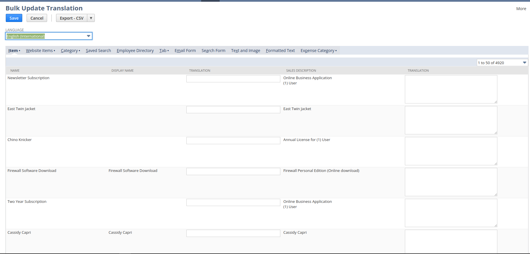 For Item Name, Description and category name also we need to update manually by doing mass update.