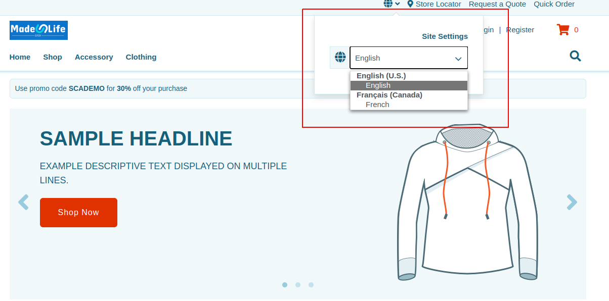 After setting up everything Correctly a drop-down for language change will show in header as shown below.