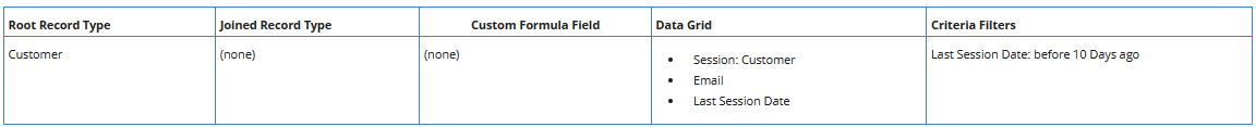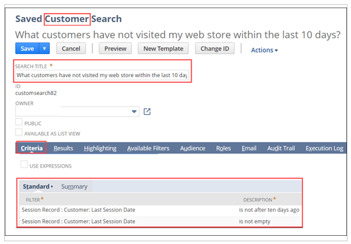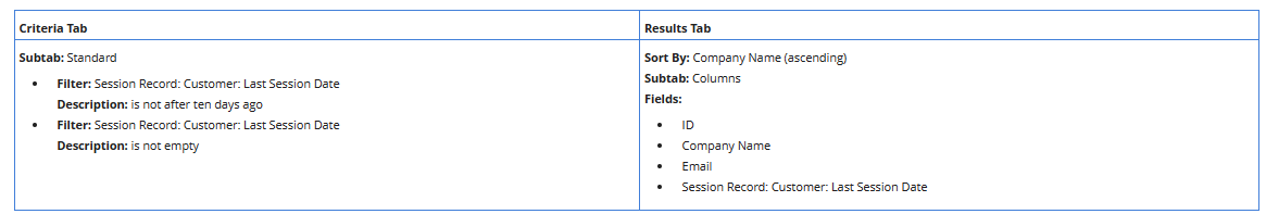 This use case shows the shoppers by company name and email who have not visited your web store within a specific number of days from today’s date. You can adjust the period for the number of days, weeks, and so on.