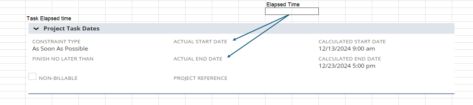 Could you please provide guidance on how to implement the calculation of elapsed time in the project and task records?