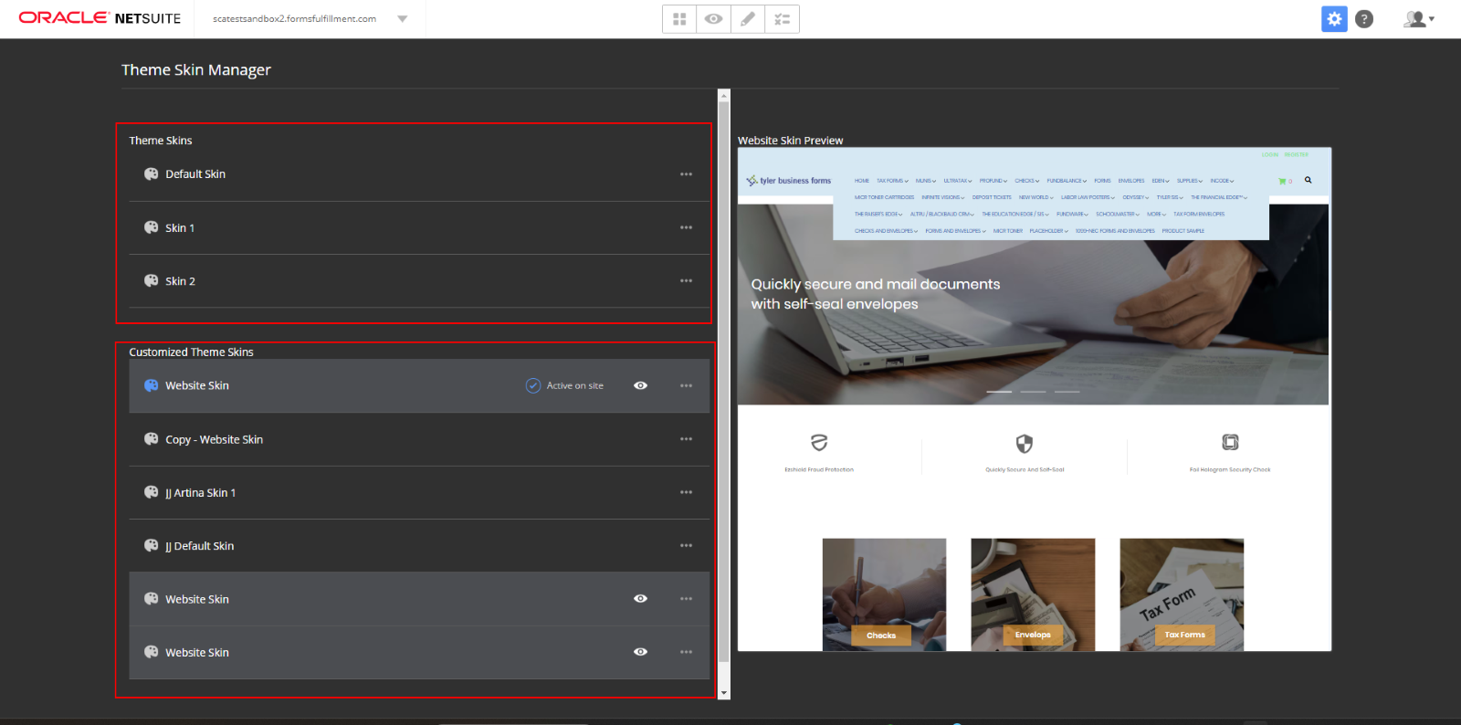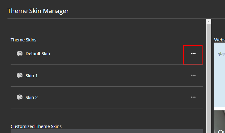 Once you have navigated to Skin Manager, you will be able to see Theme Skins and Customized Theme Skins, where Theme Skins are the default skins we are not able to edit and Customized Theme Skins are the customizable skins.