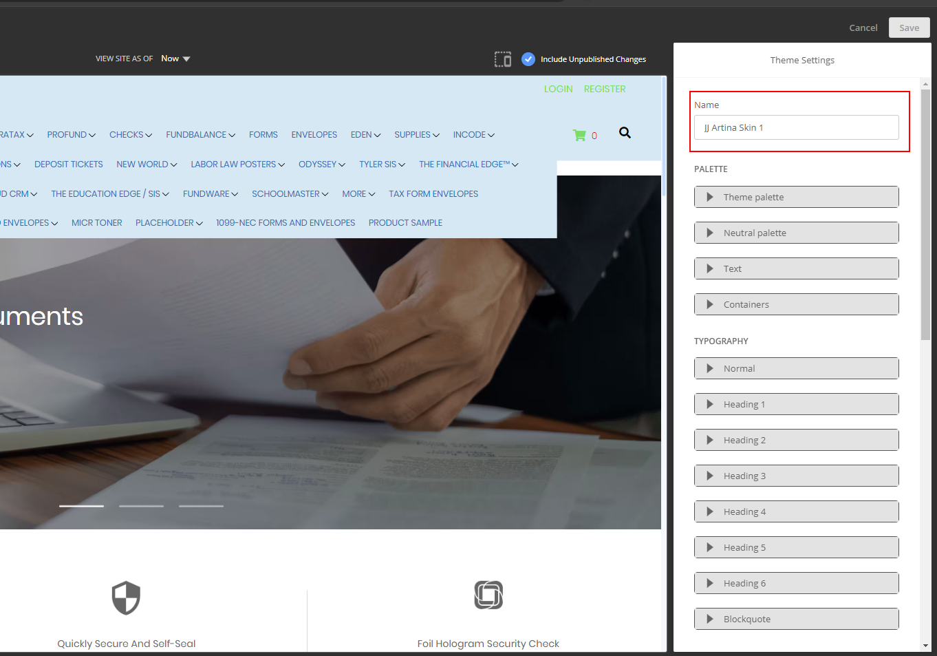 Once you have saved your skin, it can be set to active to reflect those changes on the website, edited to make more changes, or deleted from the Customized Theme Skins using these options.