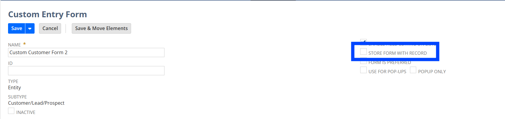 However, if you need the record to retain a specific non-preferred form, you can use the “Store Form with Record” checkbox available on the form. When this box is checked and the record is created using that form, NetSuite will save the record with that form and will not switch it back to the preferred form.