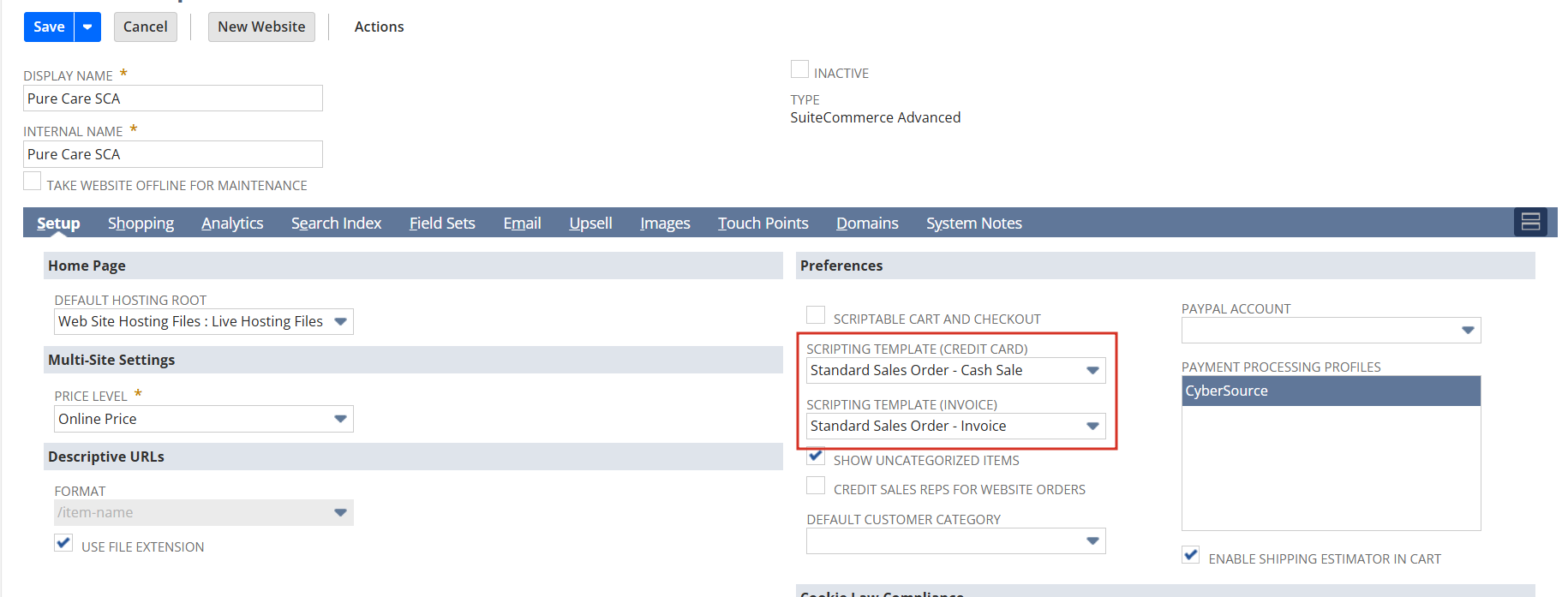 Check the SCRIPTING TEMPLATE selected on the website. Instead of using the custom template select the standard template on website.