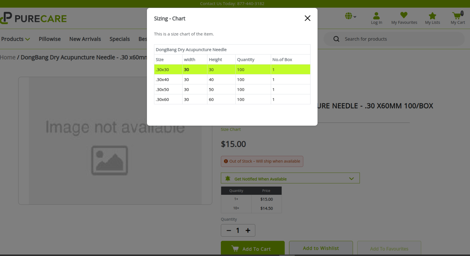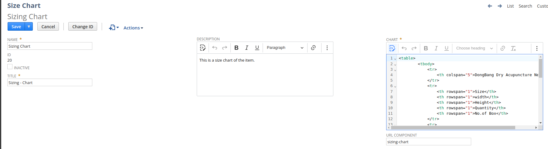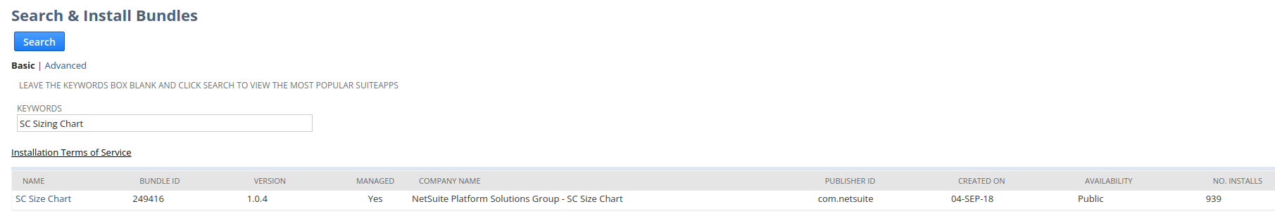 - Install the bundle called “SC Size Chart” from Suite Bundler.