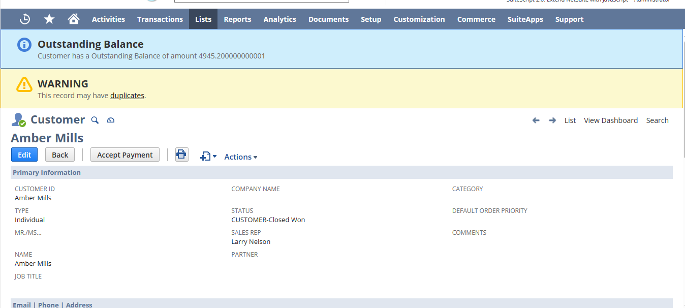 message: ‘Customer has a Outstanding Balance of amount ‘ + outstandingBalance,