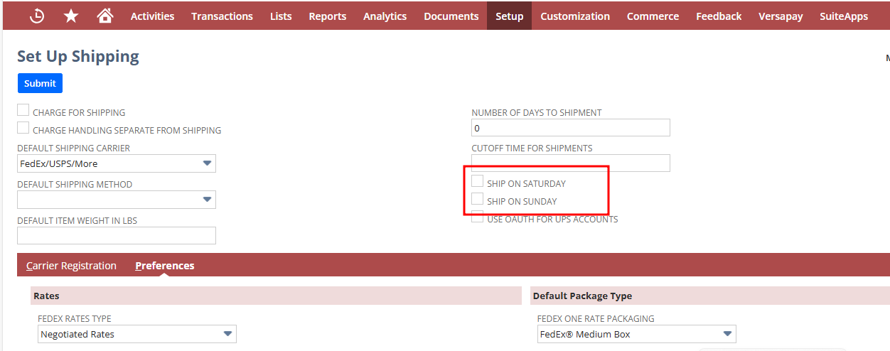 We can include shipping on Saturdays and Sundays by standard NetSuite functionality for this navigate to