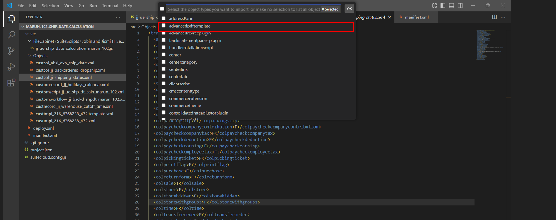 - Now from the list choose the PDF template using internal id and the push it to the git repository.