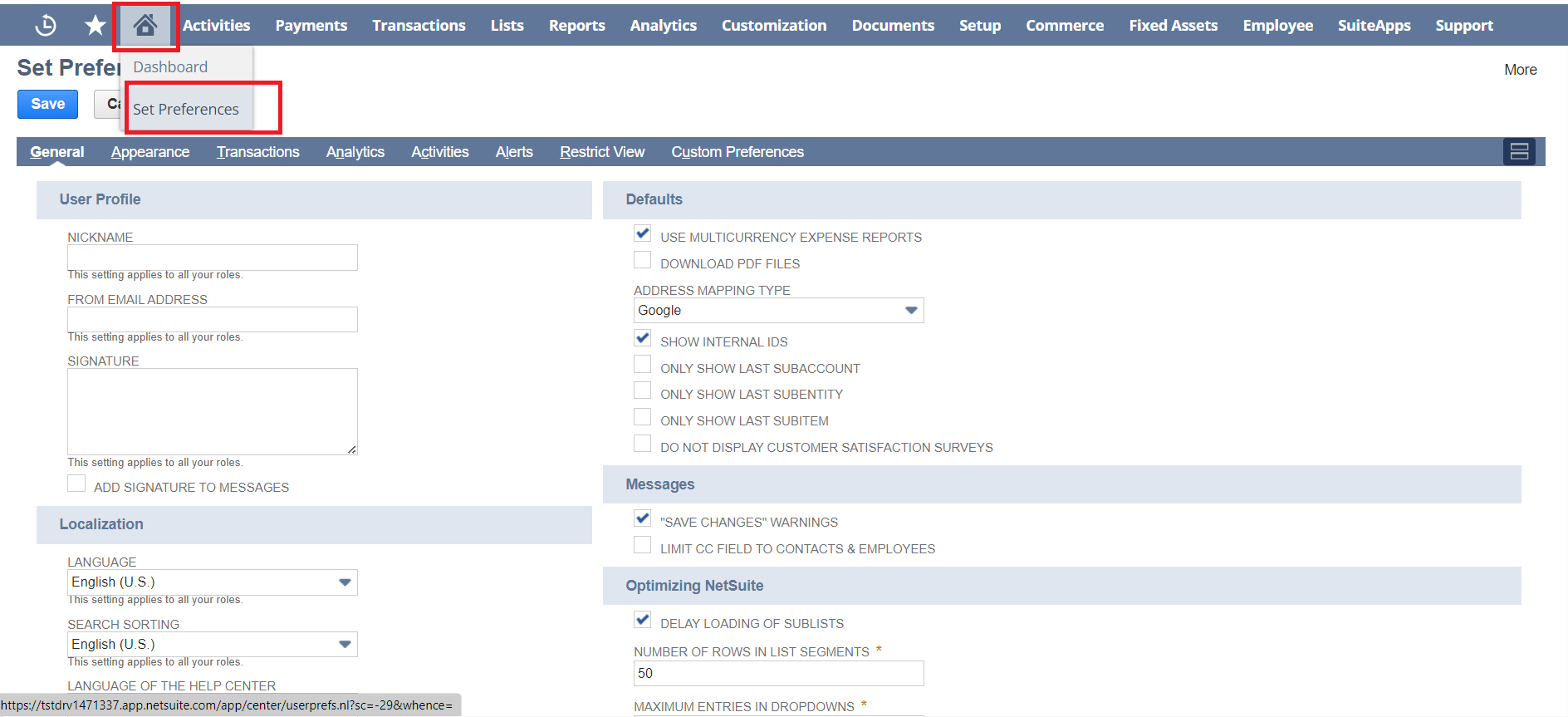 Open set preferences