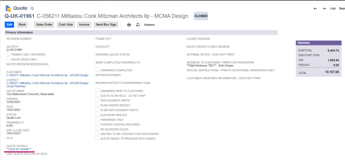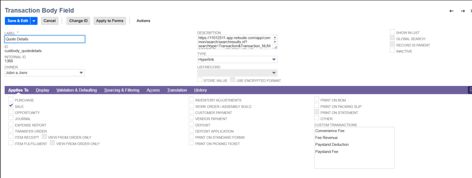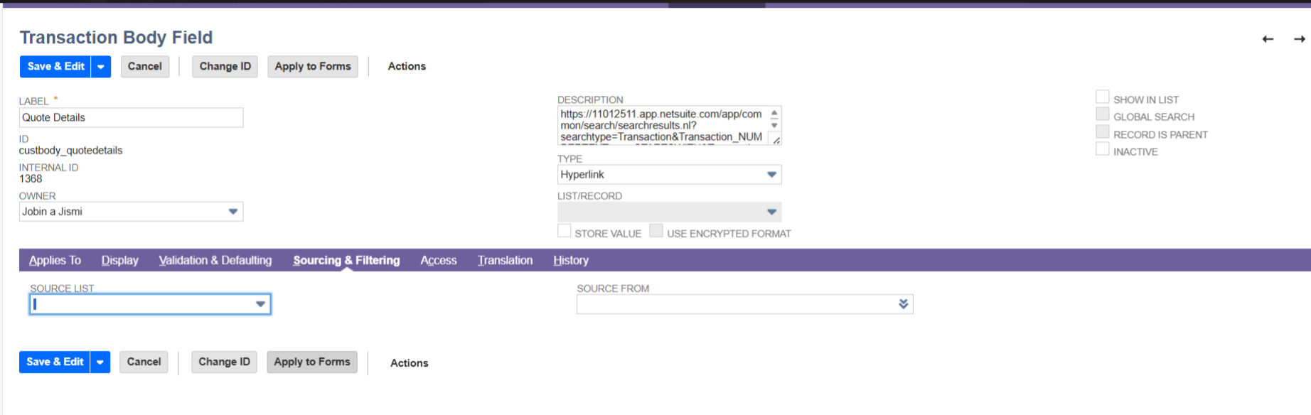 This returned the results of all the item level details of all quotes in the system. However, a custom hyperlink was added in the Primary Information of the quote to navigate to a different tab ,displaying the item level details of the quote, when clicked.