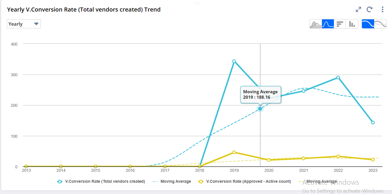 If the user needs to display different kinds of KPI data in a single graphical representation, then use the Trend Graph. We have different options like Area, Line, Bar, and Column chart representations.