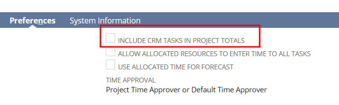 CRM tasks may be associated with a project but are not considered part of the project’s schedule unless they are explicitly included using the Include CRM Tasks in Project Totals box