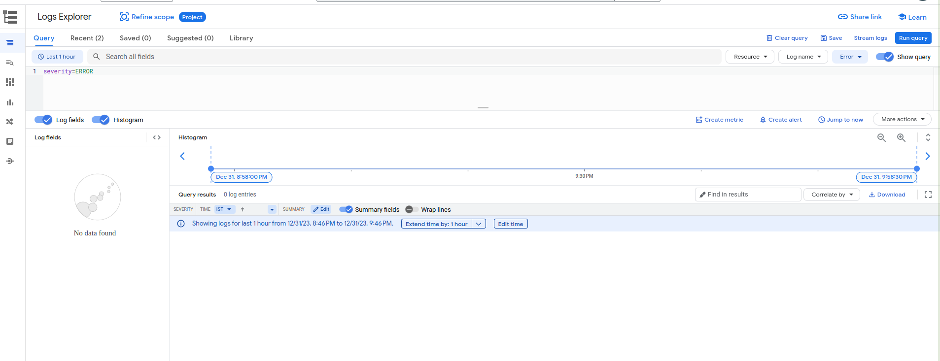 • View log details: Once logs are retrieved, Log Explorer presents them in an easily readable format, displaying relevant details about each log entry, such as timestamp, severity, log message, and associated metadata.