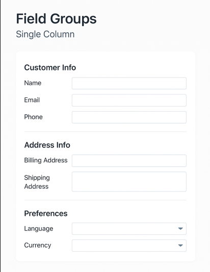 Field Groups in NetSuite are used to organize fields visually by grouping them under labeled sections. When you create a single-column Field Group, it can also be used strategically to add vertical spacing between fields.