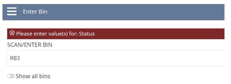 WMS Shows Error “Please Enter Value for Status” Using Inventory Status