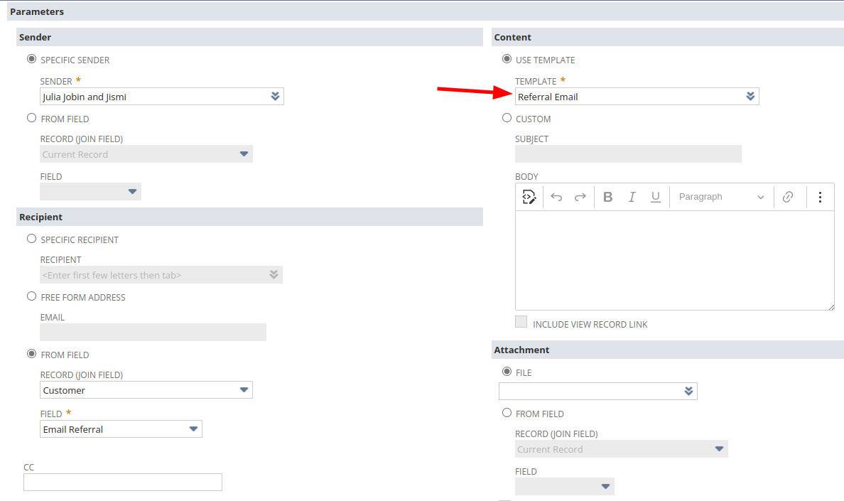 Custom created Email template: