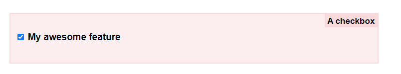 There’s a label element, and inside it a checkbox. The nice thing about this is that the browser is already doing things for us. Because the input is inside the label, the browser has associated them and now we can click anywhere on the label to toggle the checkbox, no onclick handler in sight. The browser gives us this for free. Feature-wise, we’re done.