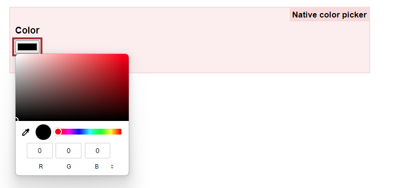 There are a ton of good looking color pickers out there, with nice canvas UIs and sliders that are built with 100s of lines of JavaScript. But did you know that you can also use a native color picker?