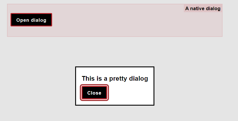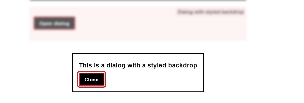 Dialog also comes with a new pseudo-element called ::backdrop. That’s the layer that sits between the dialog and the rest of the page, and you can style it to e.g. dim the rest of the page or otherwise direct a users attention to the dialog. For example, you can overlay a white layer and blur the page: