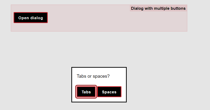Building your own dialog is also asking for trouble: you need to keep the focus inside the dialog for accessibility, announce it’s modal-ness, make sure users can’t exit it accidentally, and you’ll have to fight with whatever chat widget occupied the z-index of 2147483647 (if you know you know).